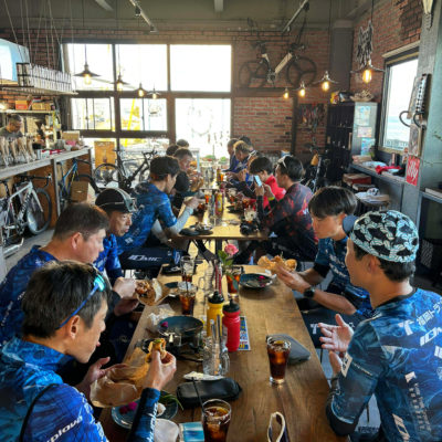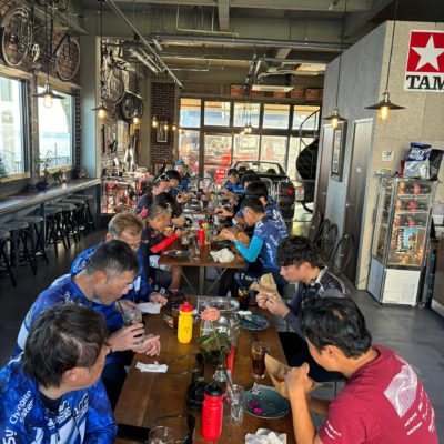 アワイチライドの拠点は、毎回お世話になっているBikers Café Circolo (チルコロ)さん。ゴール後はボリューム満点のハンバーガーを味わいつつ、それぞれのテーブルで会話が弾みました。
