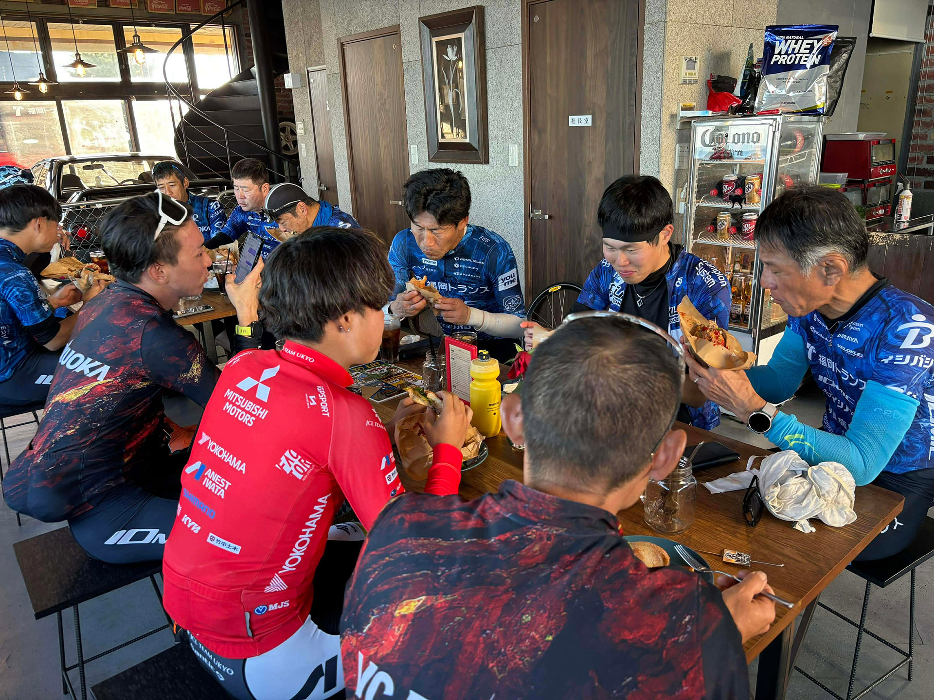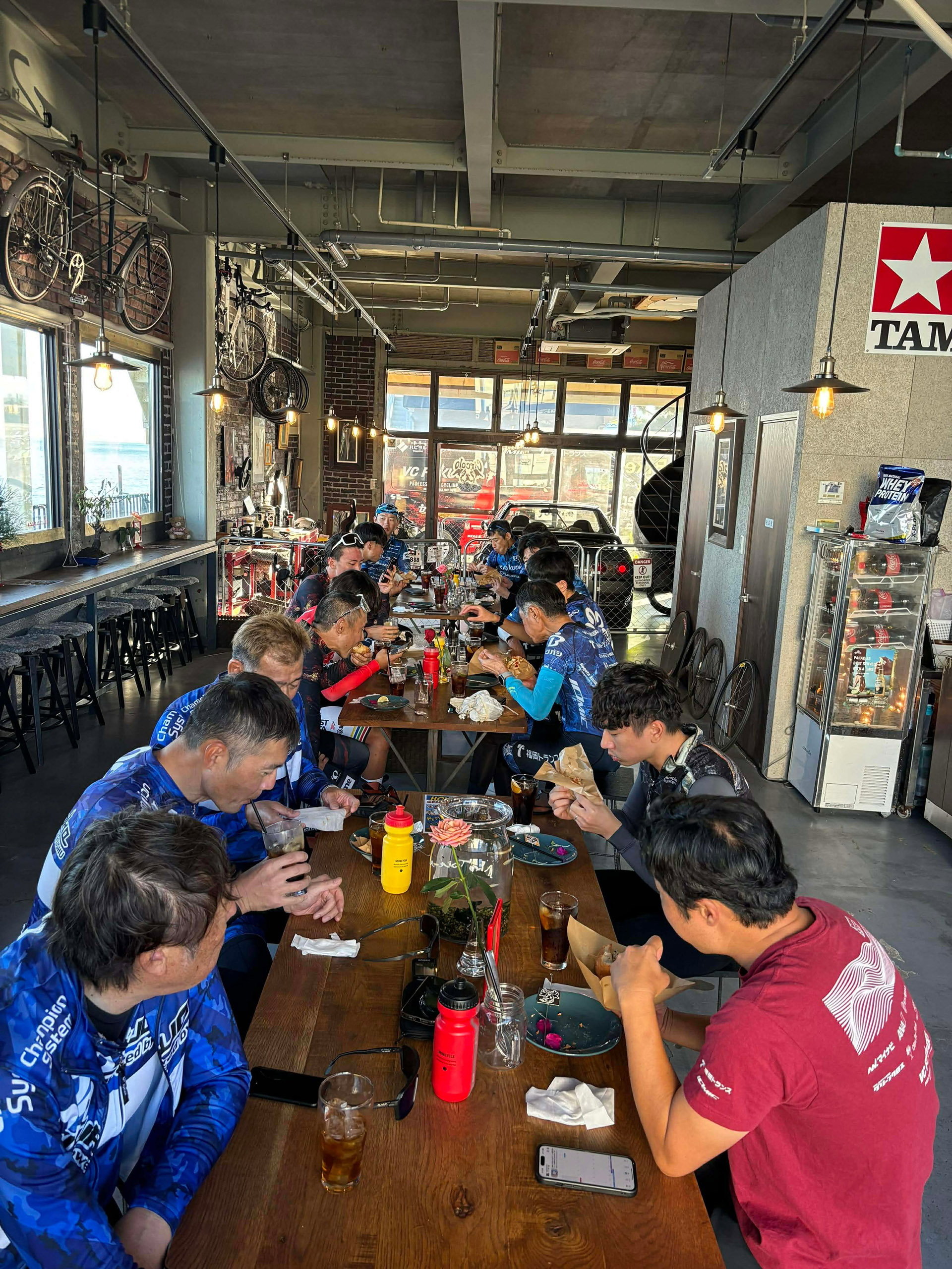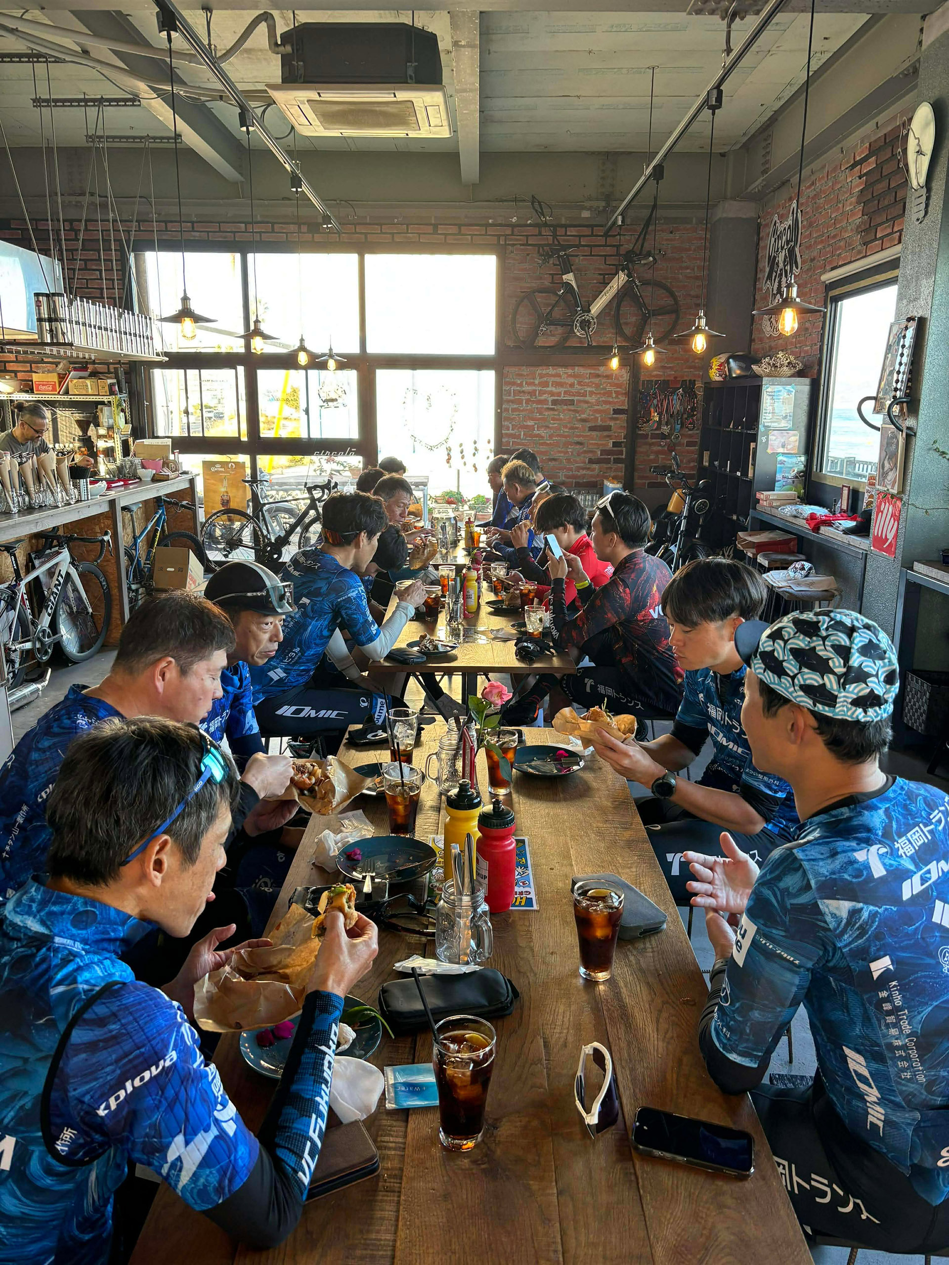 アワイチライドの拠点は、毎回お世話になっているBikers Café Circolo (チルコロ)さん。ゴール後はボリューム満点のハンバーガーを味わいつつ、それぞれのテーブルで会話が弾みました。