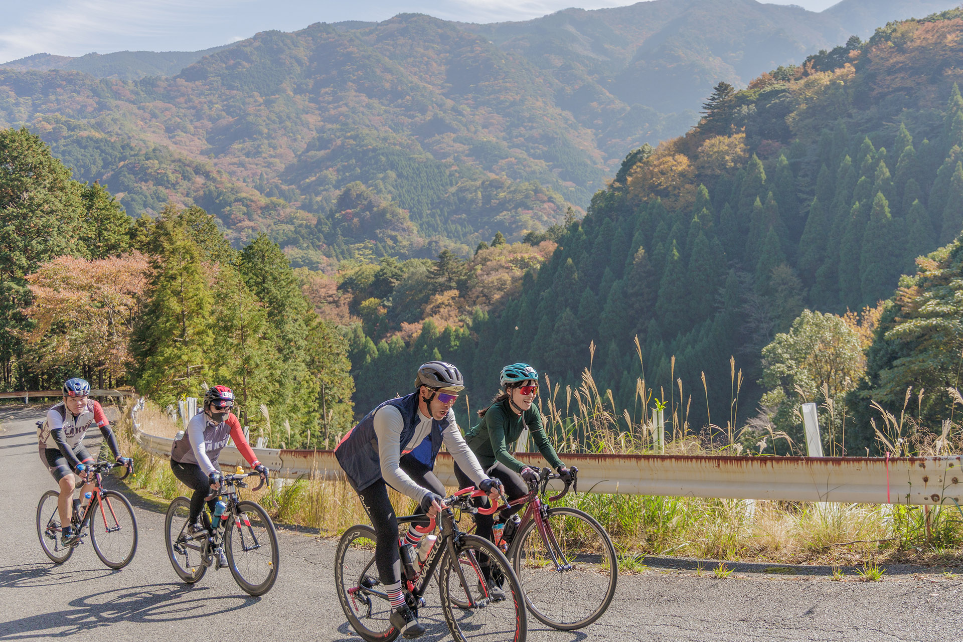 当日は11月とは思えない穏やかな気候に恵まれ、空港へと続く壮大な連絡橋を走る非日常的な体験や、色づき始めた紅葉の中でのヒルクライムなど、北九州ならではの魅力を存分に体感していただきました。