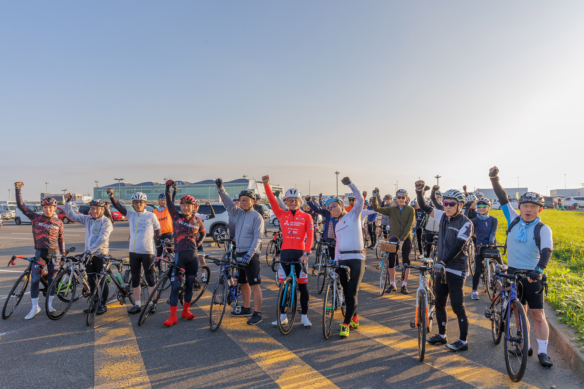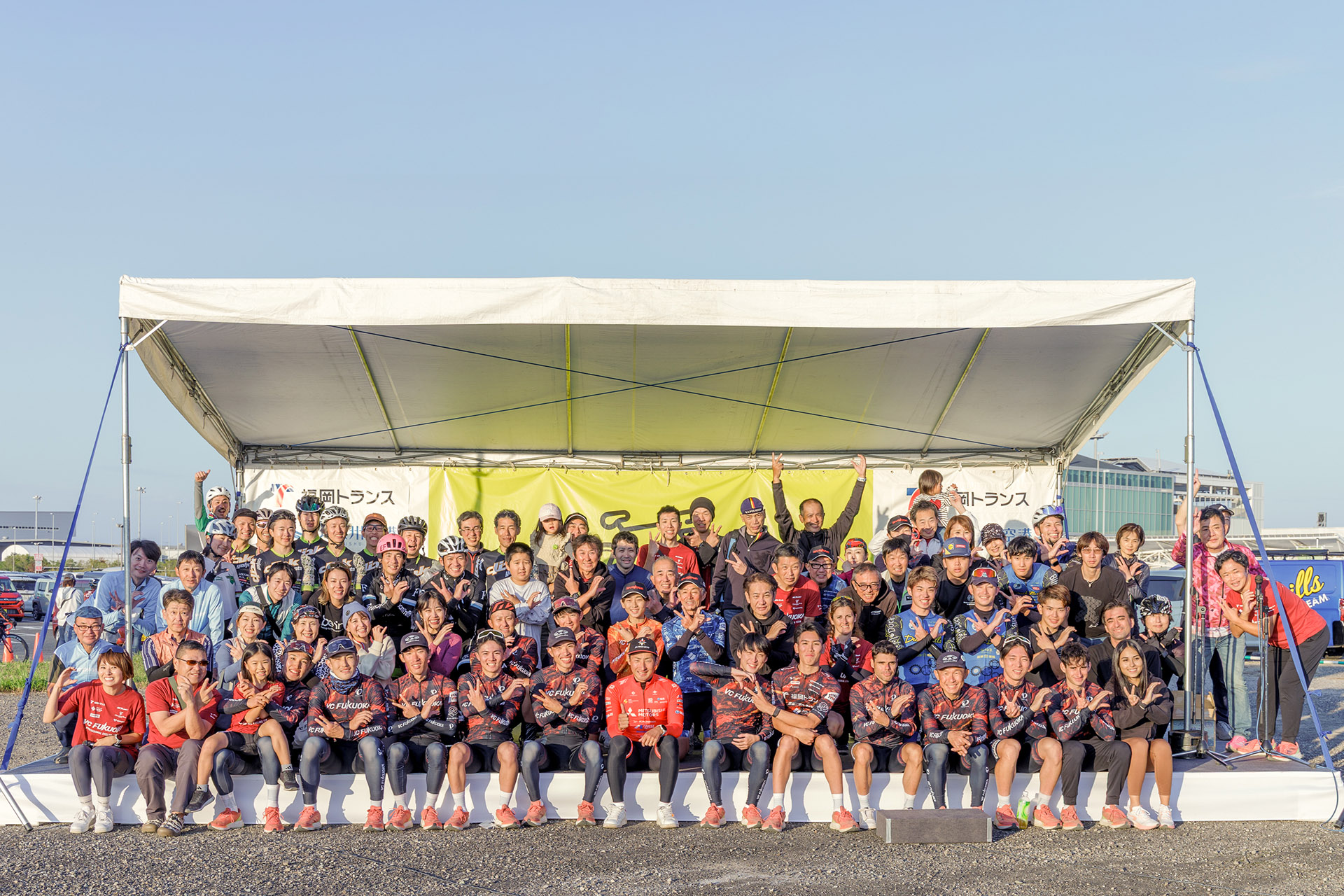 連絡橋区間ではVC FUKUOKAの選手たちが先導役を務め、参加者の皆さまをエスコート。さらに、VC FUKUOKAサテライトチーム、マスターズクラブの選手、そして福岡県内各地のクラブチームの皆さまがサポートライダーとしてイベントを支えてくださいました。心より感謝申し上げます。