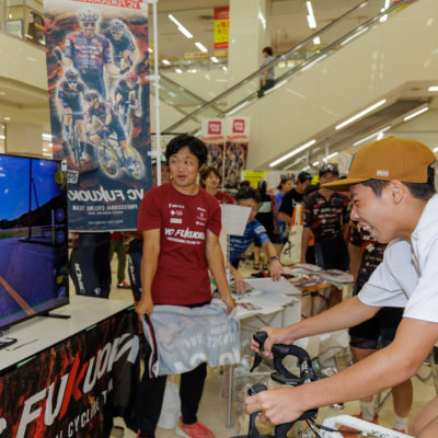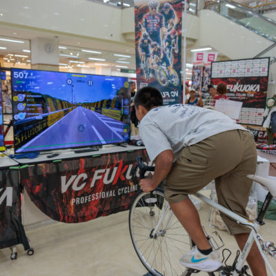 会場内では、VC FUKUOKAのトレーニングにも使用しているxplova社製スマートトレーナー「NOZA」を使った バーチャルサイクリング体験 も実施。