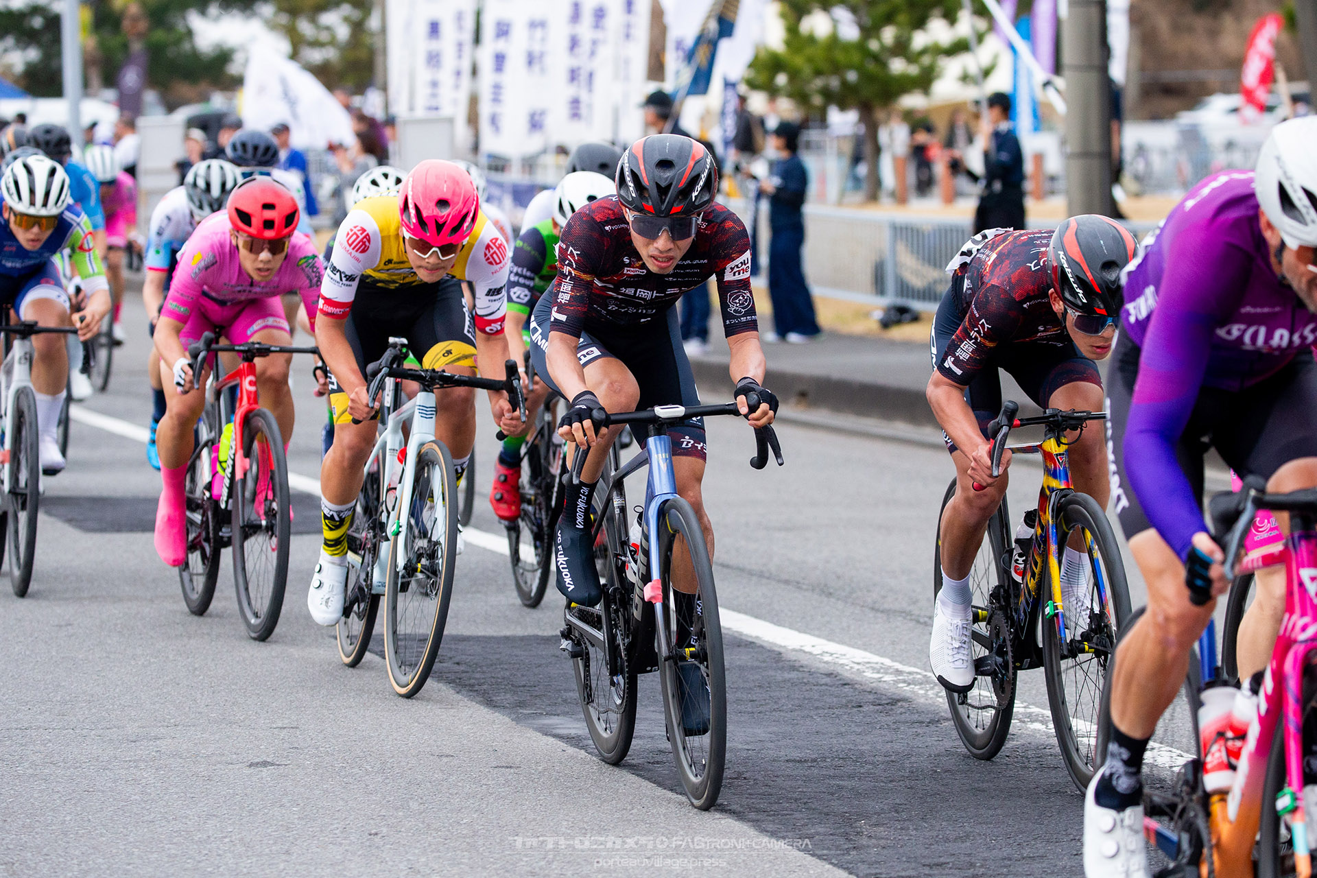 VC FUKUOKAも石原が向川をリードアウトしたが、波いるスプリンター陣の厚い壁に一歩及ばず、石原が13位、向川が14位でフィニッシュとなった。集団後方で辻野、木村もゴールしている。