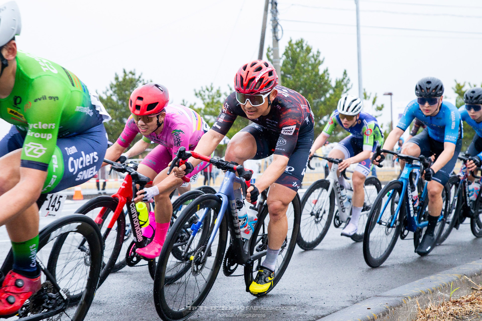 中盤から雨が降り始め、路面は一気にウェットに。落車などのトラブルを回避しようと集団はナーバスな雰囲気に包まれる。ラストスプリントに向けた位置取りは熾烈を極めた。