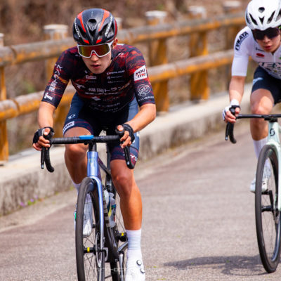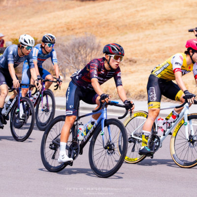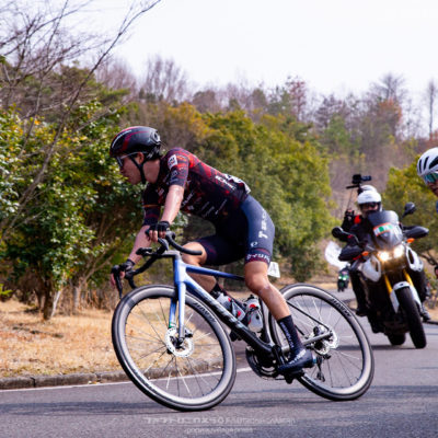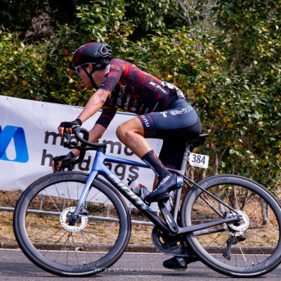 出走3名と少人数のため序盤は各自の判断でレースを進め、終盤に残った選手で勝負に絡む方針でスタートしました。序盤から2名の逃げが形成され、有力チームが集団の人数を減らしながらコントロールする展開の中、チームメイトが位置取りでサポートしてくれたおかげで集団内で安定してレースを進める事が出来ました。最終周回に入る頃には先頭集団は8名まで絞られ、キナンと広島が複数名を残す中で飛び出しをはかる選手の対応を試みましたが、最後の登りの頃には脚が無く遅れてしまい、8位でのフィニッシュとなりました。今後は終盤でより積極的に展開に絡める様にしていきたいと思います。