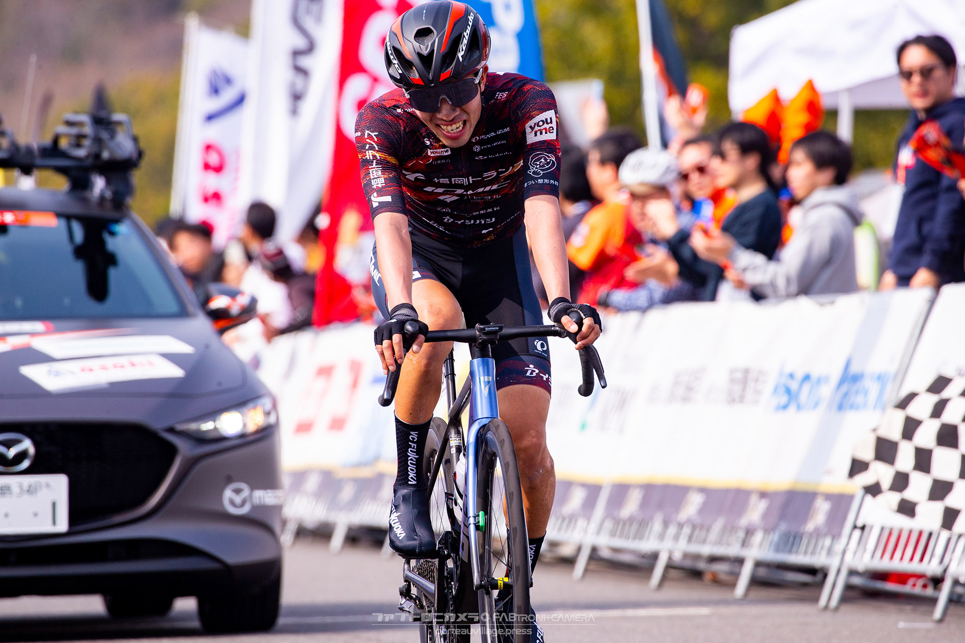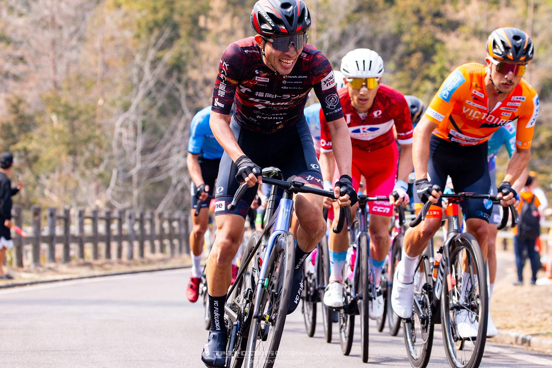 VC FUKUOKAは出走3名と少人数ながら、チーム一丸となってエースの木村をゴールへと送り出すレースを展開。