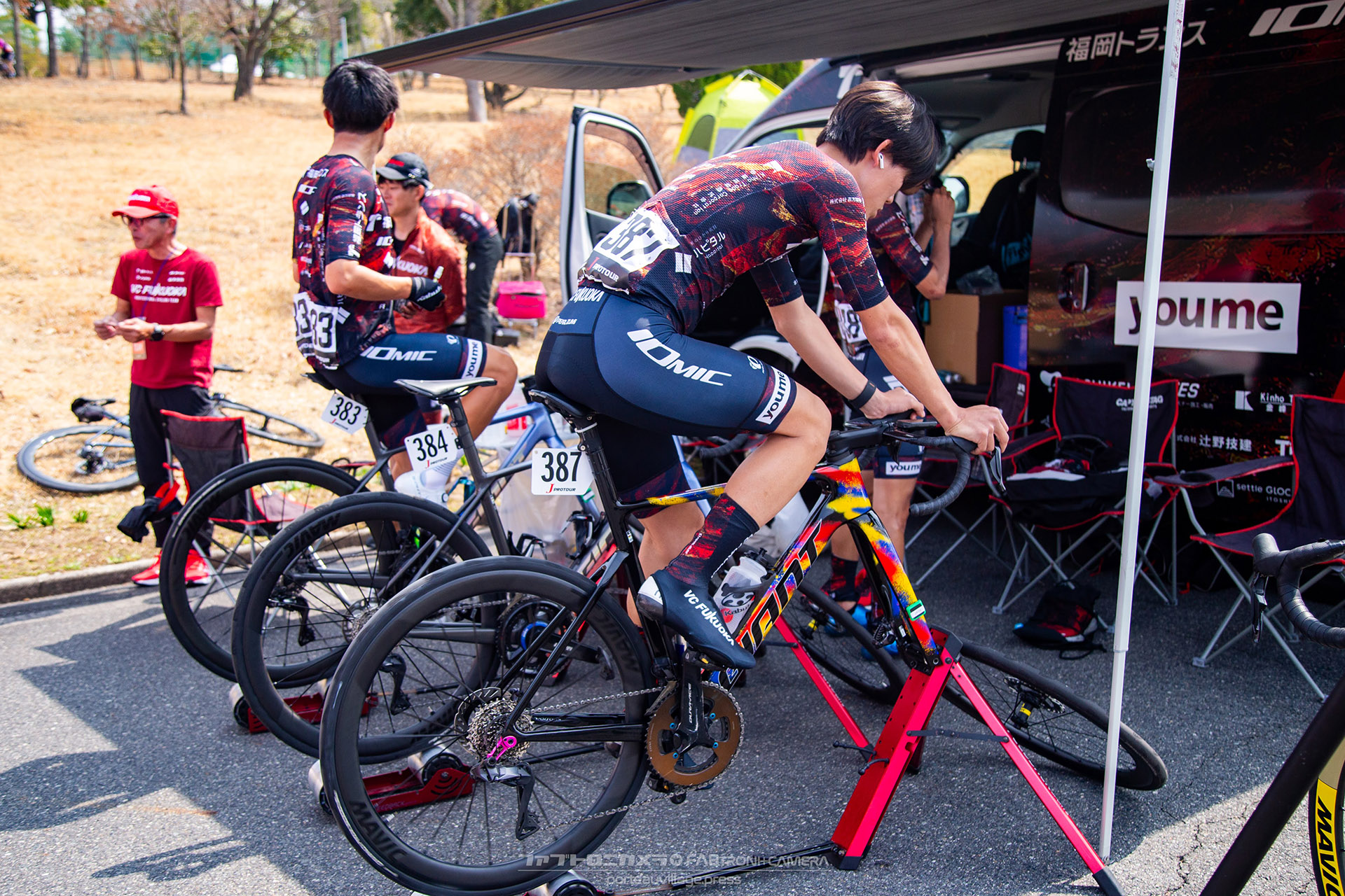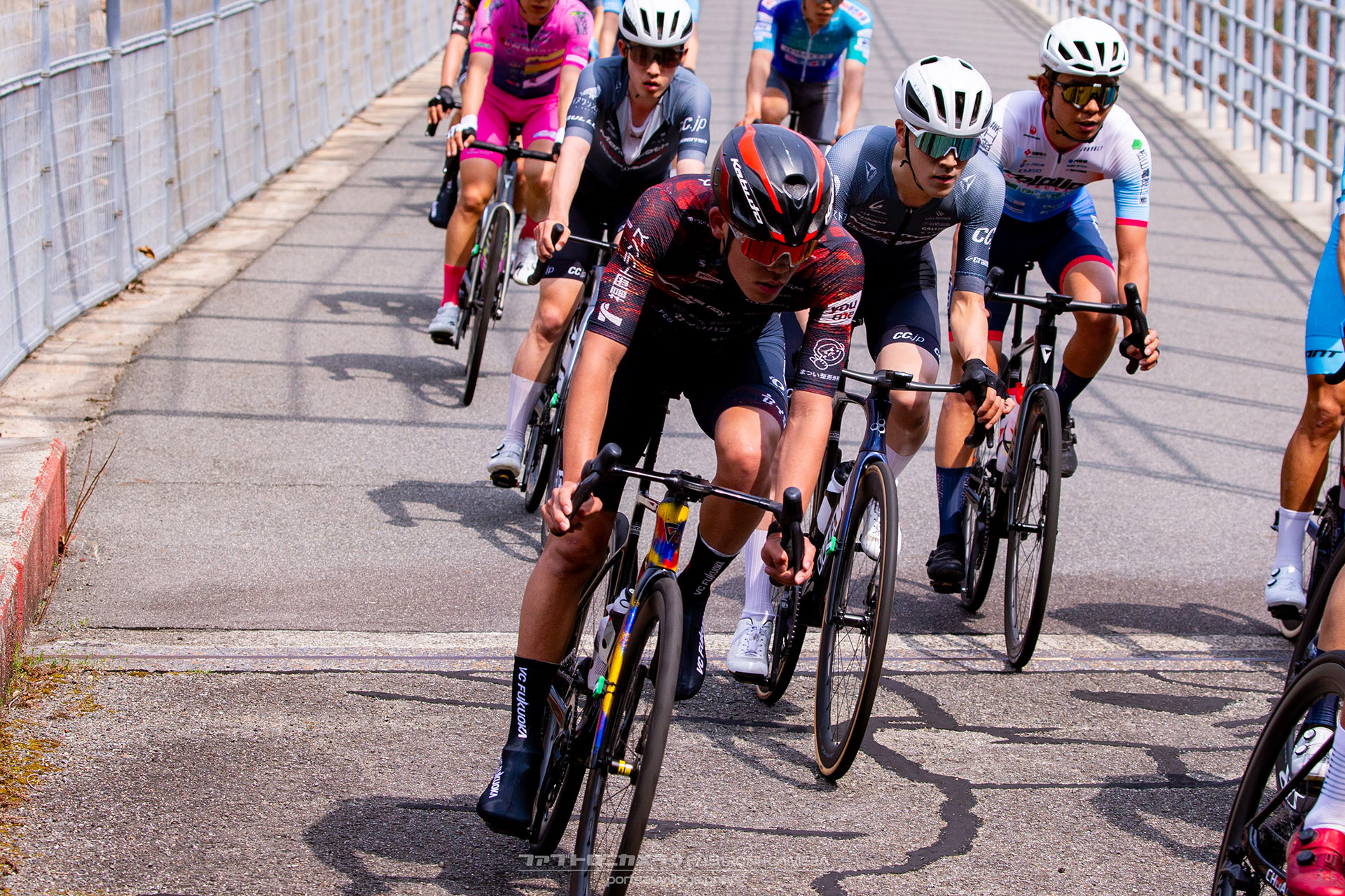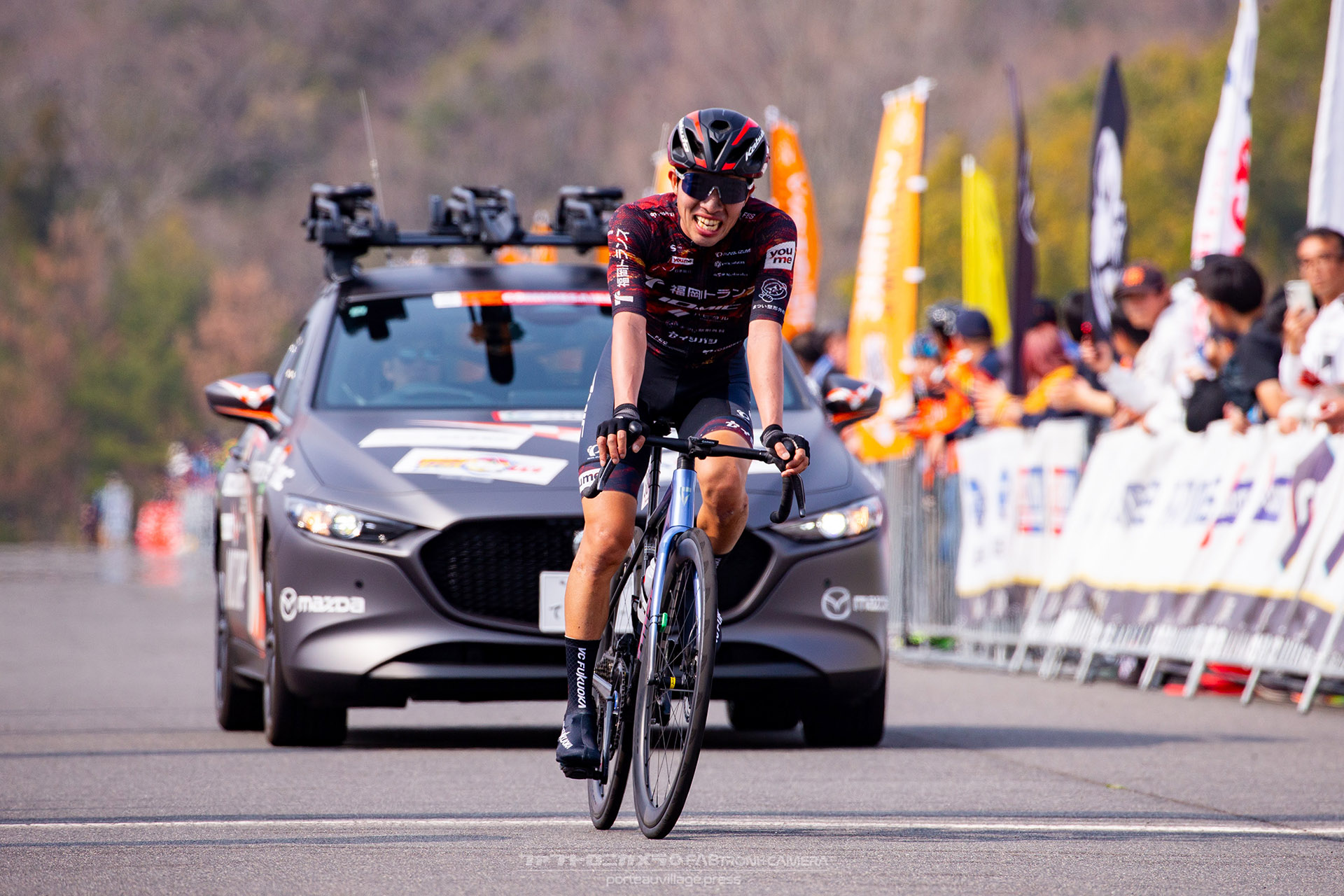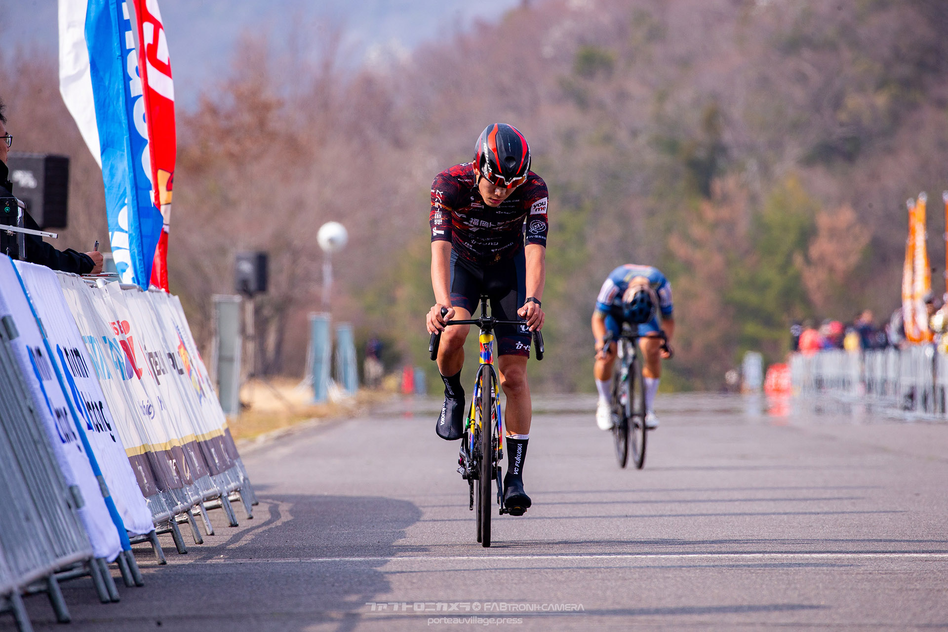 VC FUKUOKAは出走3名と少人数ながら、チーム一丸となってエースの木村をゴールへと送り出すレースを展開。