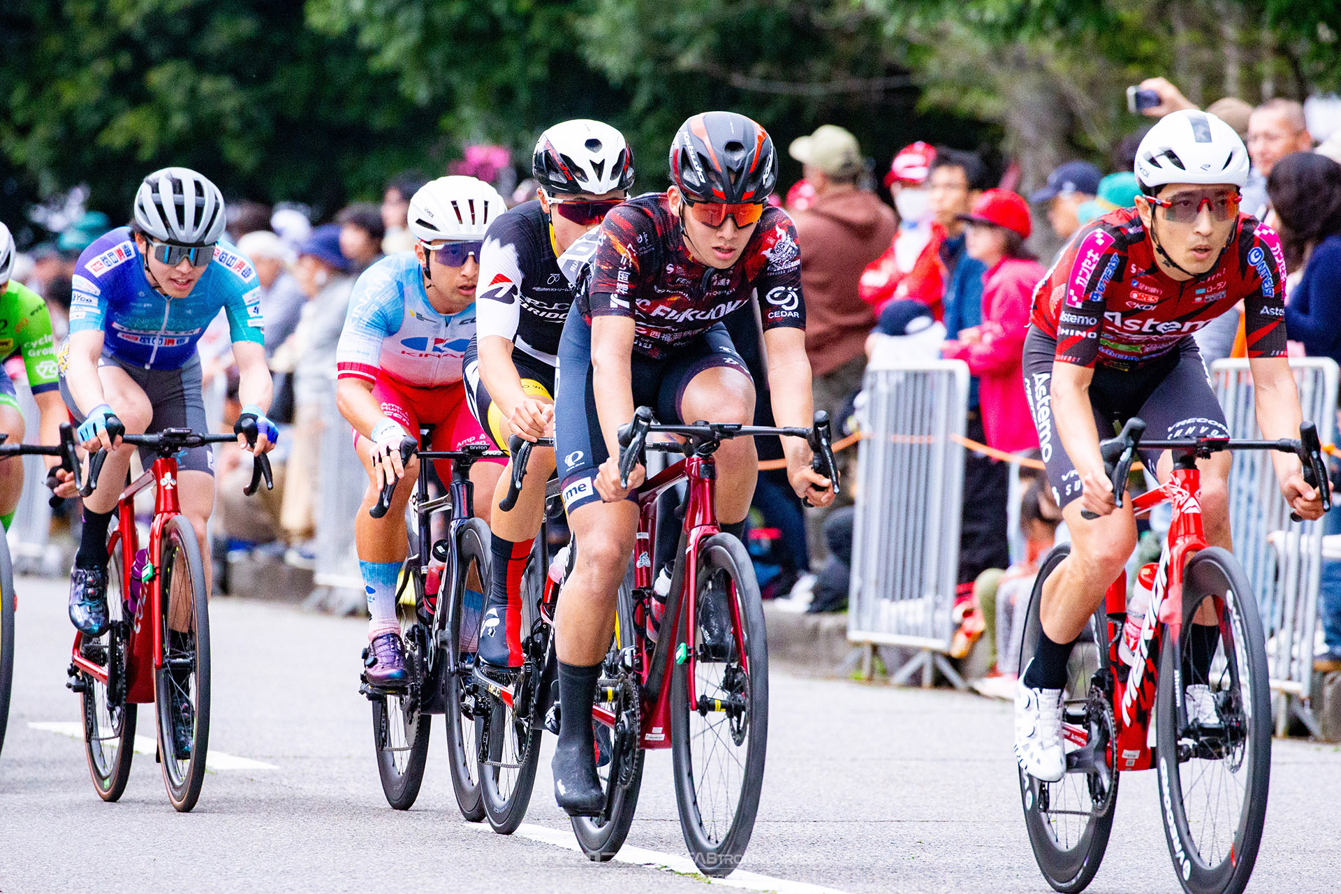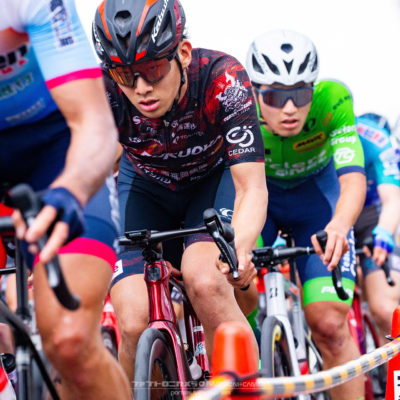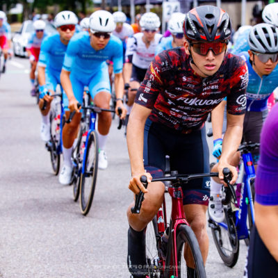 スタートから早々にアタックが飛び交うクリテリウムらしい展開の中、住田は流れに乗じて集団前方をしっかりとキープ。_