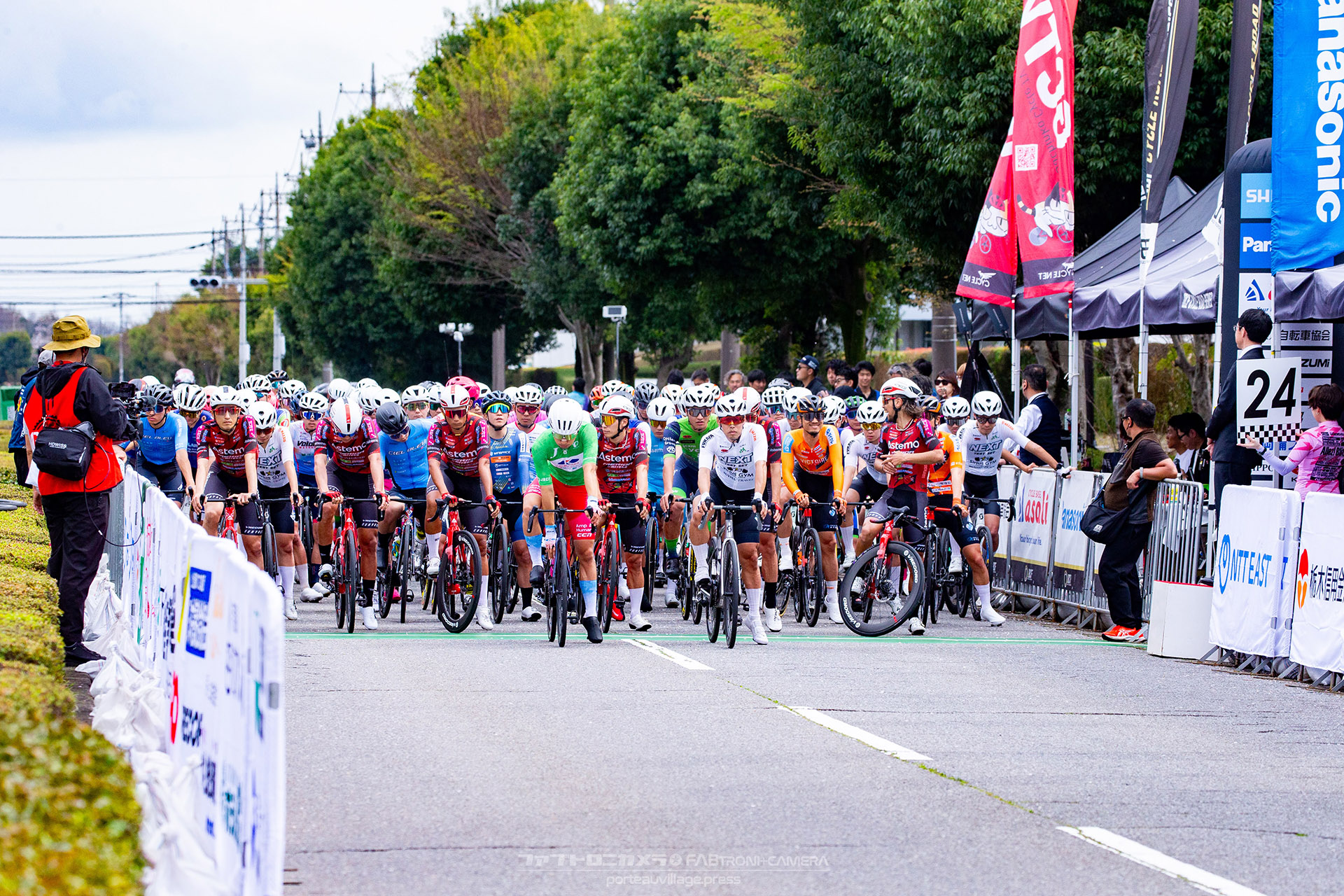 前日の雨が嘘のように路面はドライコンディションへと回復。薄曇りの空の下、宇都宮清原工業団地を舞台に、107名の選手が2.4kmの周回コースを25周・計60kmで競い合った。